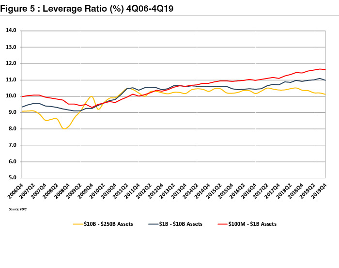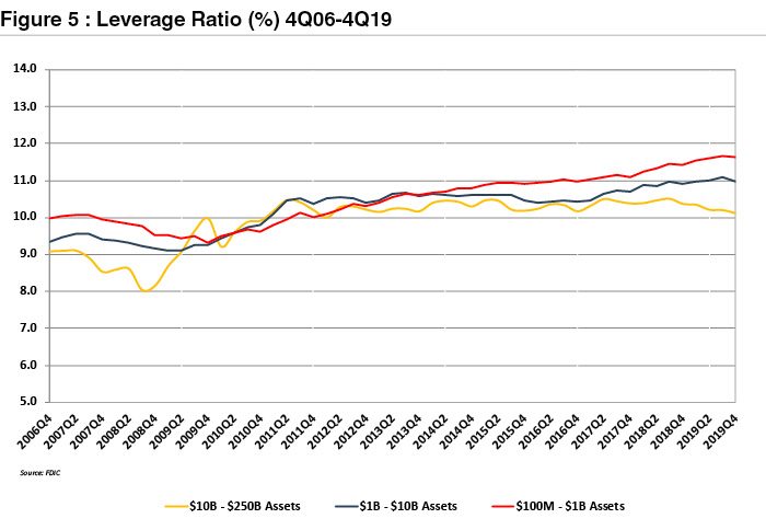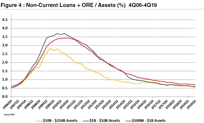 Our expectation is that NIMs may fall below the last cycle low of ~3.5% recorded in 1H09 because asset yields are much lower today than in 2008 when the GFC1 was gathering steam.Likewise, deposit rates can be cut somewhat but they, too, are much lower now than was the case in 2008.By way of comparison the NIM for banks with $1 billion to $10 billion of assets in 4Q06 was 3.74% according to the FDIC.By 1H09 the NIM for the group had declined to less than 3.4%.As of 4Q19 the NIM was 3.67%.
