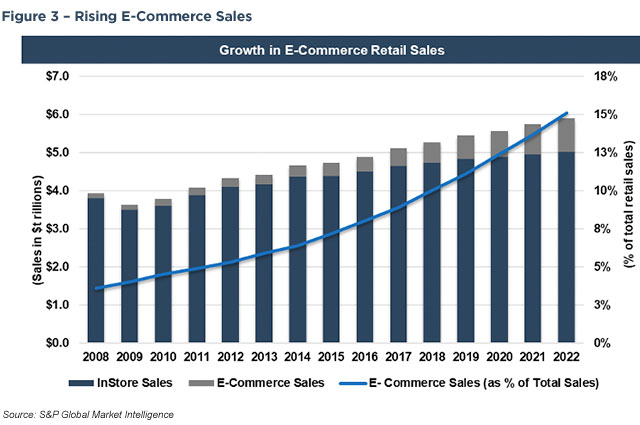 At the time of bankruptcy, Neiman Marcus generated about one-third of its sales (about $1.5 billion) online. MyTheresa generated approximately $500 million of this up from $238 million in 1Q17 when certain subsidiaries that held MyTheresa were designated “unrestricted subsidiaries” by the Company. While MyTheresa’s sales increased, the legacy department store business declined as the Company struggled to connect with younger affluent customers who favored online start-up boutiques and had little inclination to shop in a department store. As shown in the chart below, ecommerce sales as a portion of total retail sales have doubled over the last five years to about 12% in 2019. The move to work from home (“WFH”) and social distancing practices born of COVID-19 in early 2020 have accelerated the trend such that the pre-COVID-19 projection of e-commerce sales rising to 15% by 2020 will likely prove to be significantly conservative.