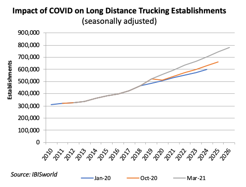 Industrial production and consumer spending, spurred on by the substantial stimulus programs enacted by federal government, have recovered more rapidly than initially expected. This rapid recovery has seemingly reduced the expected long-term impacts of COVID-19 on the long-distance and local trucking industries.