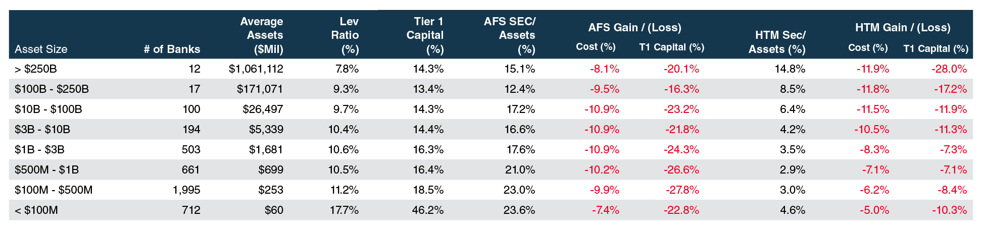 As shown in the figure below, U.S. commercial banks have suffered unrealized losses in their bond portfolios equal to roughly 10% of the cost basis of both AFS and HTM classified portfolios as of September 30, which compares to a price reduction of 15.6% in the Barclay’s index as of quarter end.
