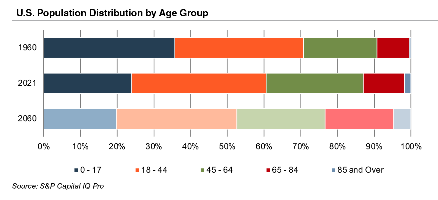 The aging population, driven by declining fertility rates and increasing life expectancy, represents a major demand driver for medical devices.The U.S. elderly population (persons aged 65 and above) totaled 40.3 million in 2021 (13% of the population). The U.S. Census Bureau estimates that the elderly will more than double by 2060 to 95 million, representing 23% of the total population.
