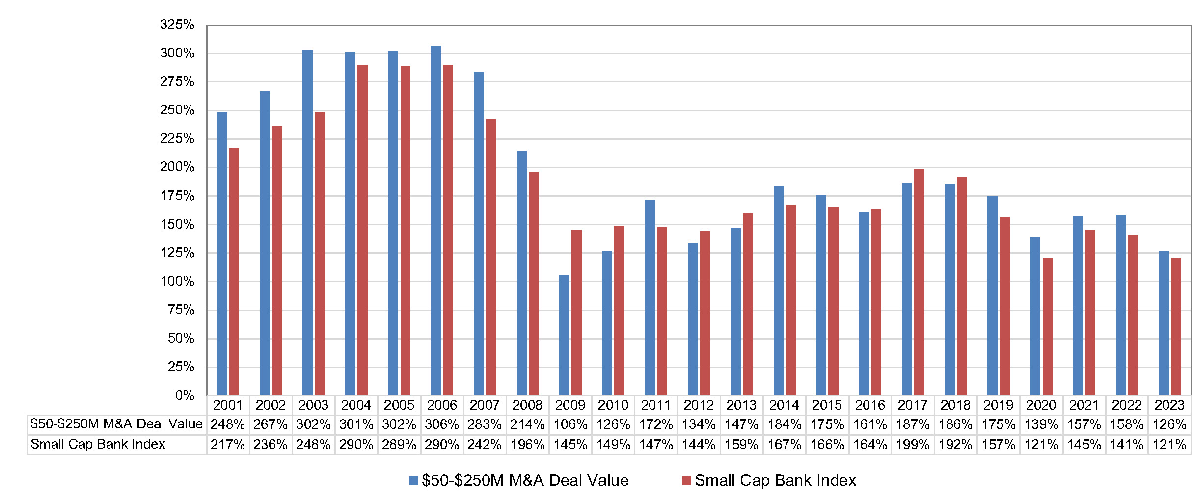 Acquisition pricing in the pre-GFC years, as measured by P/TBV multiples, was comfortably above 250%.